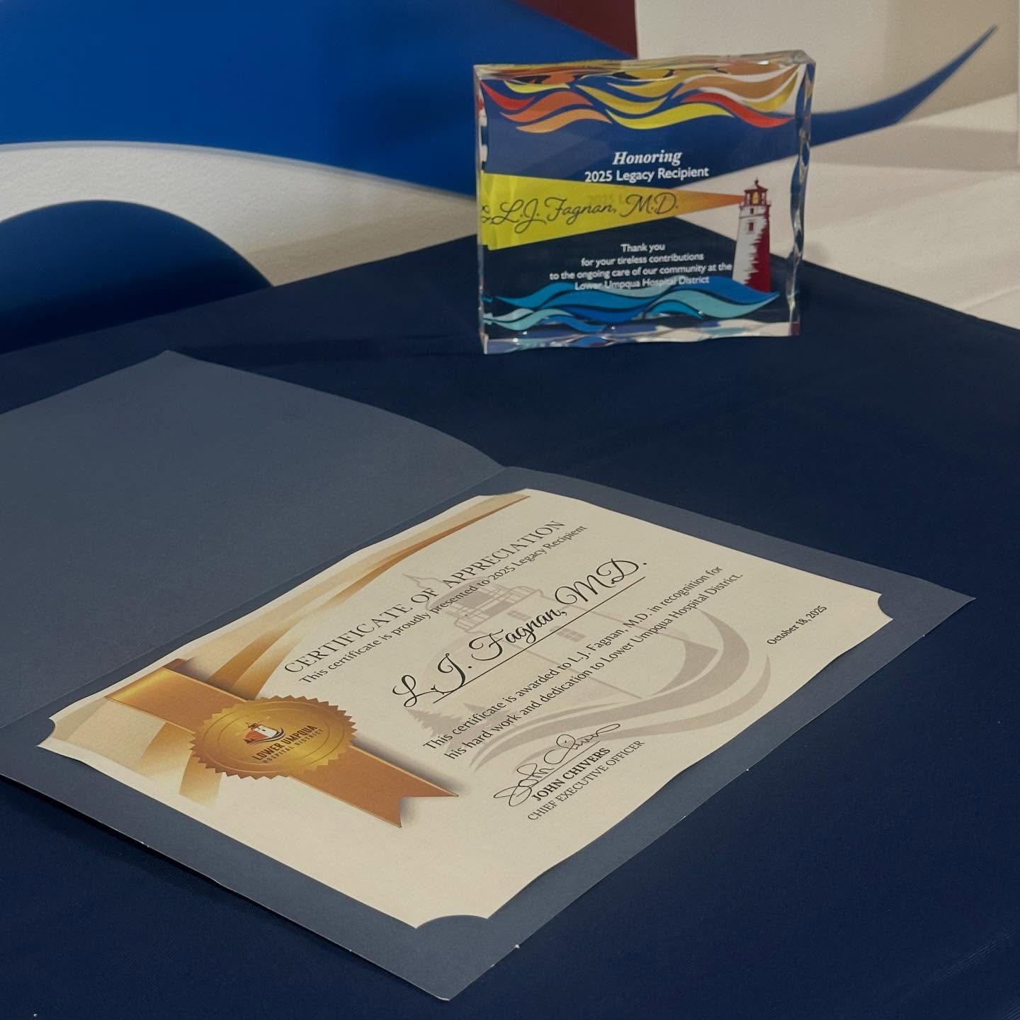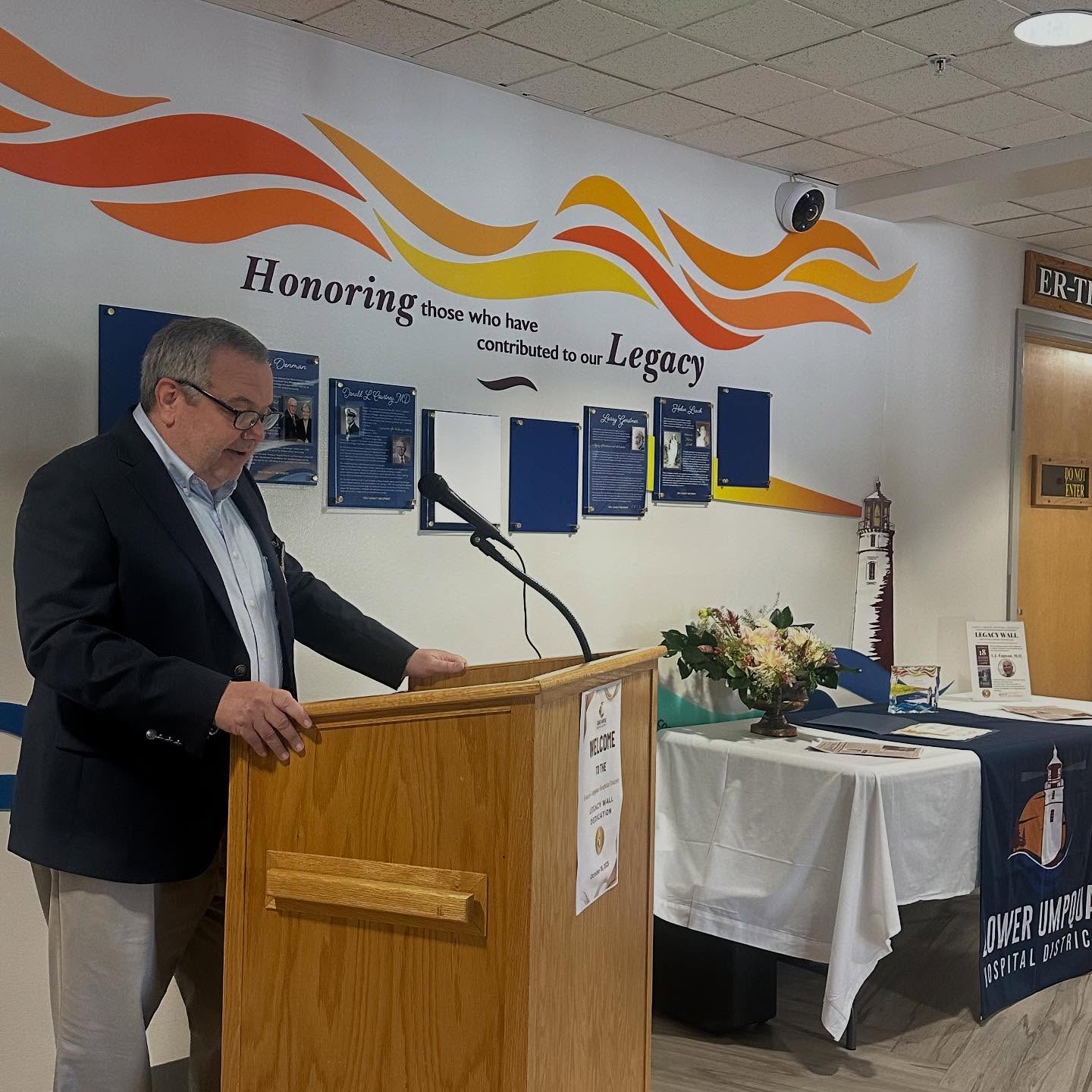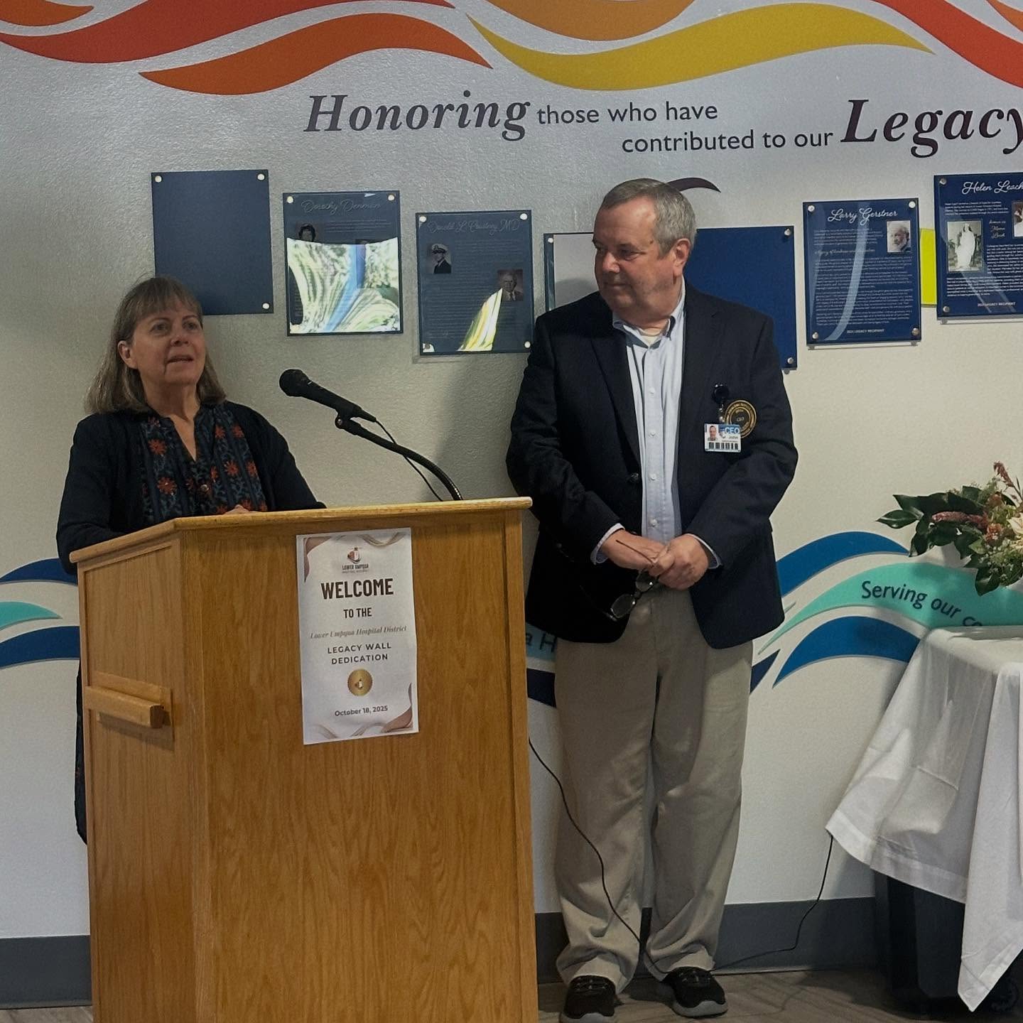 On Saturday, October 18, Lower Umpqua Hospital hosted its Legacy Wall Celebration, marking a special recognition ceremony in honor of LJ Fagnan, MD. This event centered on honoring the hospital’s 2025 Legacy Award recipient- and individual whose dedication, service, and impact have shaped the institution’s mission and community.